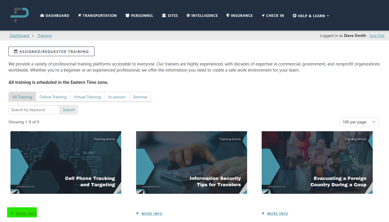 Administrators can assign training by selecting the individuals they want to attend (including themselves).